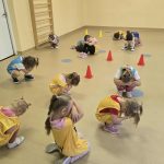 Vaikai mankštinosi dainuodami dainelę „Kalėdos“, žaidė judrius žaidimus „Netvarka ir tvarka“, „Ledo futbolas“.