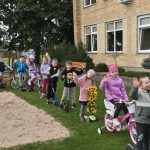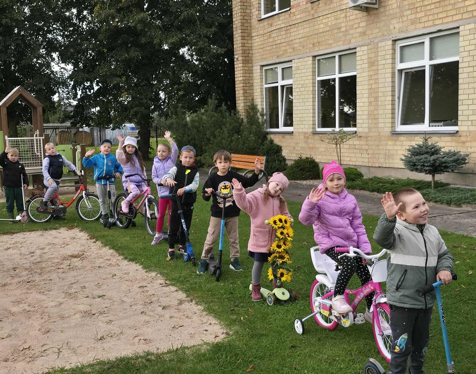 Rugsėjo 22-ąją lopšelis-darželis prisijungė prie Europos judumo savaitės iniciatyvos ir paminėjo Dieną be automobilio, kurios tikslas – atkreipti visuomenės dėmesį į neigiamą transporto poveikį aplinkai ir žmonių sveikatai. Nuo pat ryto kieme šurmuliavo mažieji su dviratukais ir paspirtukais – vaikai atvyko pasiruošę smagiam ir aktyviam rytui. Juos pasitiko Meškiukas ir Bitutė. Dviratininkai dalyvavo linksmoje eisenoje, išbandė įvairias užduotis: varė dviratukus į kalniuką, važiavo per kliūtis demonstruodami savo įgūdžius ir drąsą. Didžiausia dienos staigmena – policijos pareigūnų ir jų bičiulio Amsiaus apsilankymas! Jie vaikams priminė svarbiausias saugaus eismo taisykles, pakvietė apžiūrėti policijos automobilį.